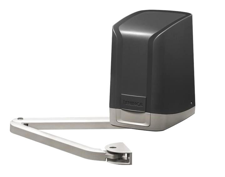 Комплект автоматики BENINCA KSAM.T2 італійського виробника призначений для встановлення на великі стовпчики, де відстань від завіси до краю становить до 280 мм. Містить вбудований блок керування та радіоприймач. Модель сумісна для роботи з акумуляторами резервного живлення. Мотори оснащені амперометричною системою захисту від наїзду на перешкоду.